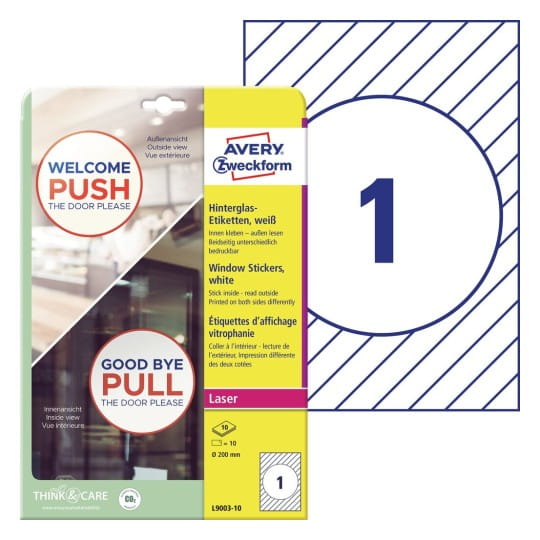 Białe naklejki na okna L9003-10 o średnicy Ø200 mm od Avery Zweckform.