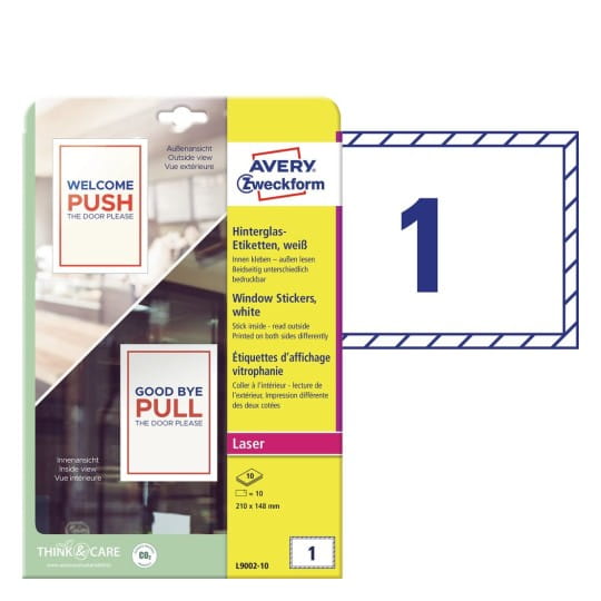 Białe naklejki na okna L9002-10 w formacie 210 x 148 mm od Avery Zweckform.