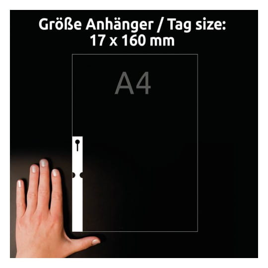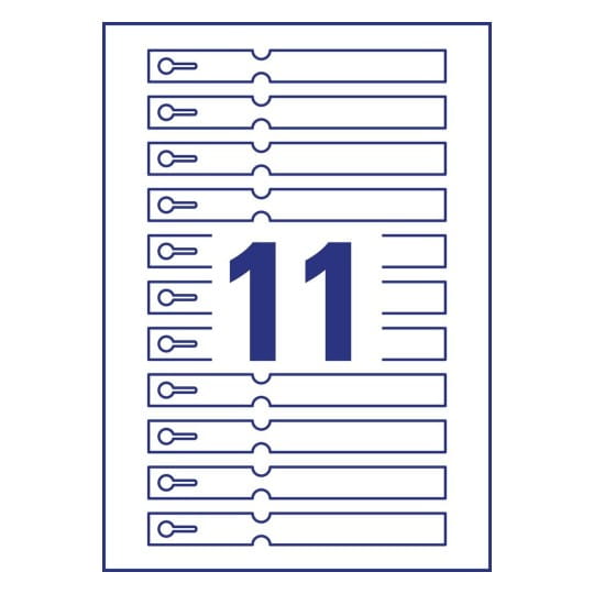 Etykiety są wodoodporne i idealnie nadają się np. do oznaczania krzewów, drzew i innych roślin w szkółkach, centrach ogrodniczych lub marketach budowlanych, do etykietowania produktów dla małych firm i niezależnych sprzedawców detalicznych, do oznaczania produktów w handlu hurtowym, do ogólnego oznaczania w supermarketach budowlanych oraz w sektorze przemysłowym, do oznaczania pojazdów w garażach i salonach samochodowych, jako zawieszki do zamieszczania informacji na temat przeprowadzonych kontroli jakości lub do identyfikacji przepływu materiałów, a także do użytku prywatnego. 110 białych, foliowych etykiet pętelkowych na 10 arkuszach.