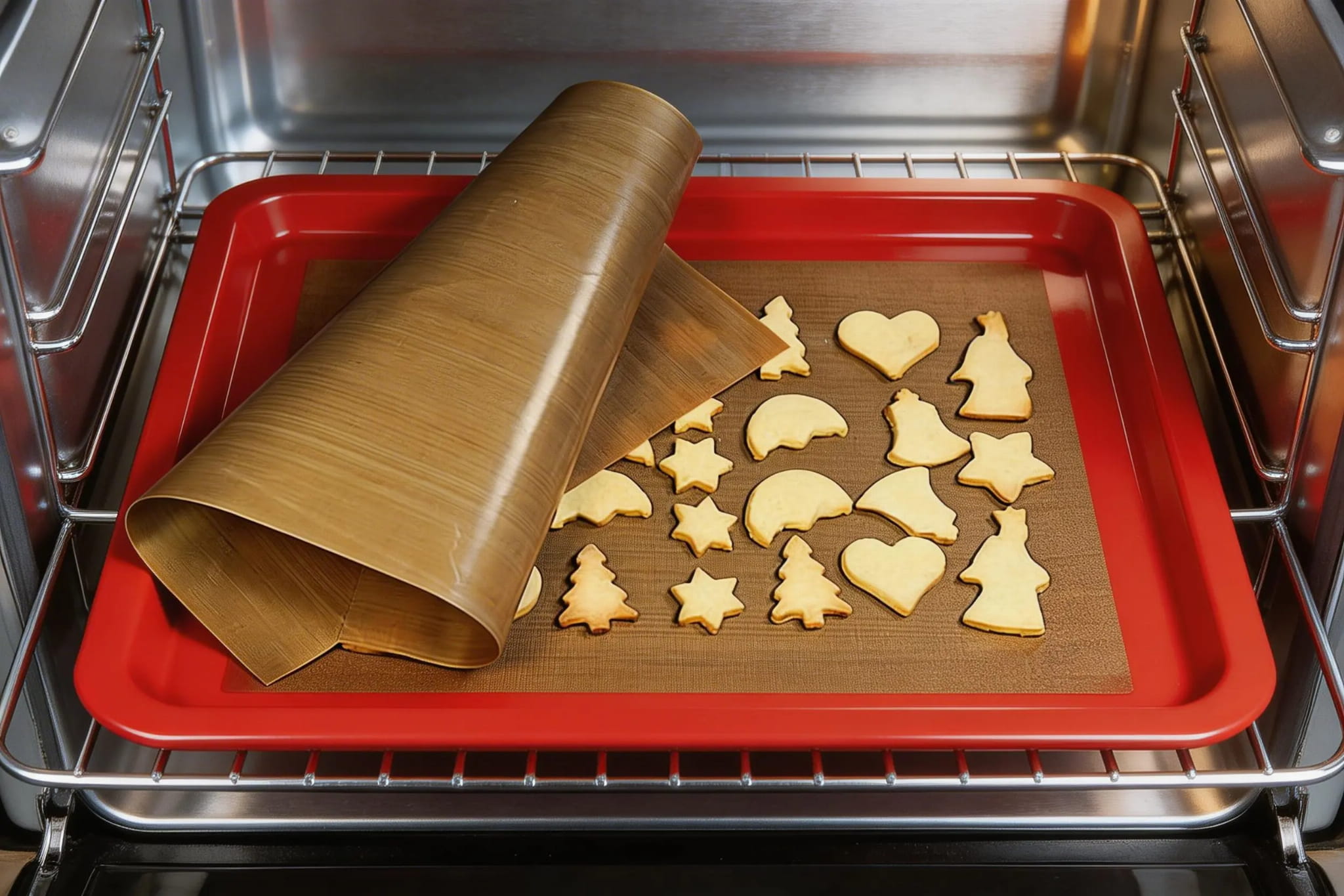 Folia ma powłokę teflonową "non-stick", która zabezpiecza przed przywieraniem.
