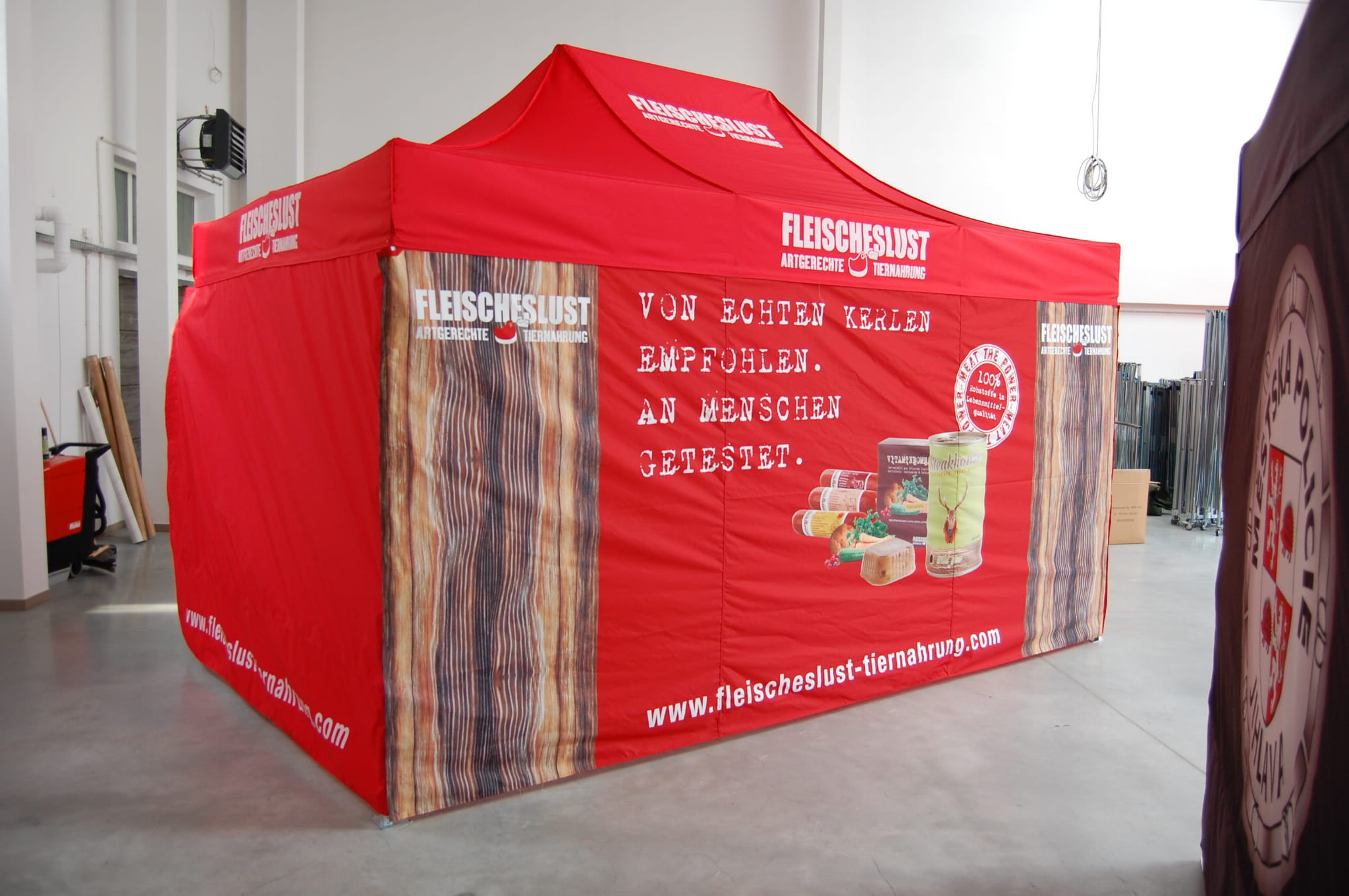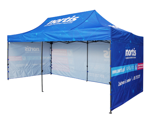 Podana cena jest przykładową i dotyczy najmniejszego namiotu 2 m x 2 m w wersji standard - z trzema ściankami.