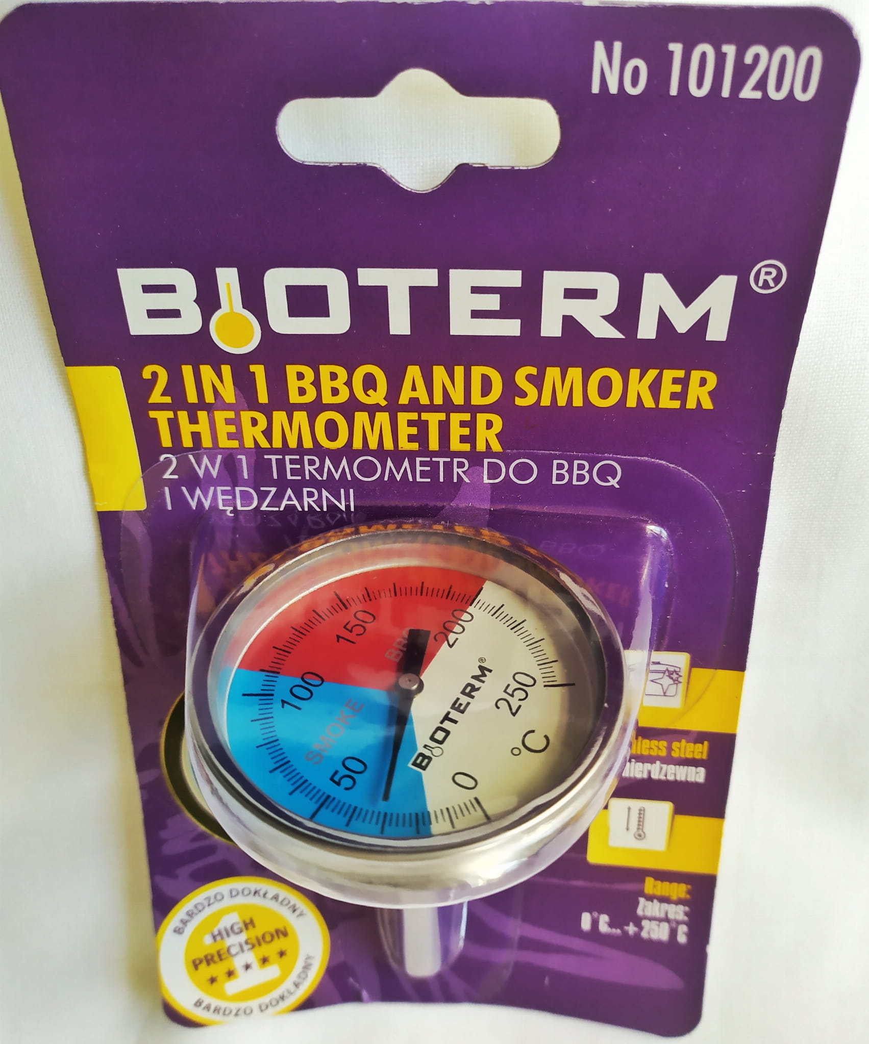 Wykonany ze stali nierdzewnej, idealny do mierzenia temperatury podczas procesu wędzenia w wędzarni czy grillowania w grillu. Czujka termiczna znajduje się w obszarze między 1.3 cm a 5 cm od początku szpikulca.